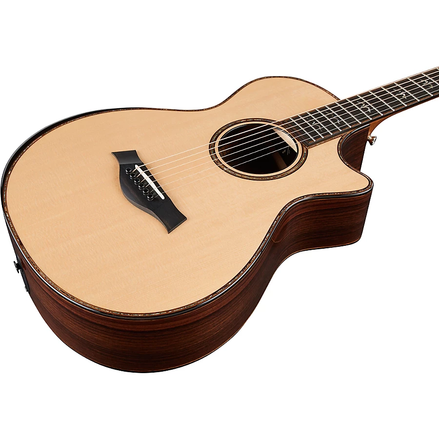 Additional details include Taylor's abalone/pearl Ascension fretboard inlay, genuine West African ebony binding, single ring paua rosette with koa and ebony purfling, koa and pau edge trim, and koa purfling on the top, back, sides, fretboard and peghead. For ultimate tuning precision, the guitar is outfitted with premium 21:1 ratio Gotoh 510 tuners. This instrument ships in a deluxe hardshell case made by Taylor for optimal fit and protection.