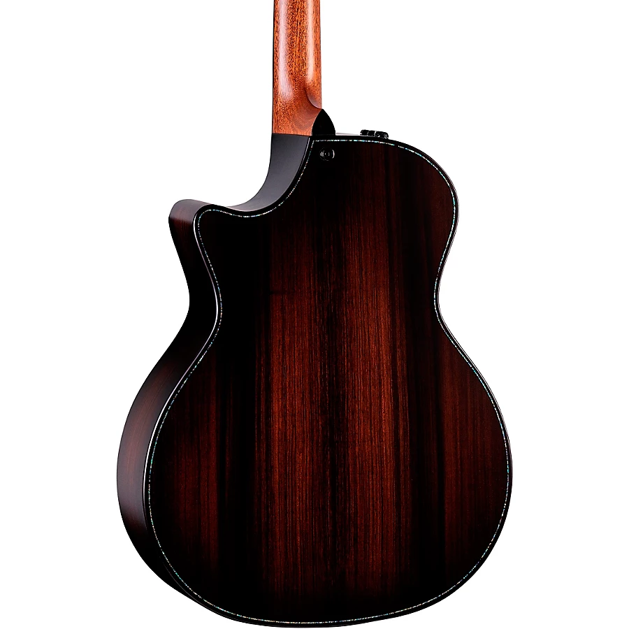 From its advent, the Grand Auditorium body helped shape the sound of Taylor acoustic guitars. It suits a wide range of playing styles, from light fingerpicking to medium strumming, and produces a clear, balanced sound across the tonal spectrum. In addition to this versatility, the 914ce Builder��s Edition puts supreme playability and style in the hands of every musician with a beveled armrest and cutaway, chamfered body edges and a contoured Curve Wing bridge. Defining the sound of this guitar are lavish tonewoods that bring out a rich sound, enveloping the listener in a world of sonic bliss. Gorgeous Indian rosewood and lutz spruce give you the projection and resonance you expect from a Builder��s Edition Taylor, instantly recognizable from the first note.