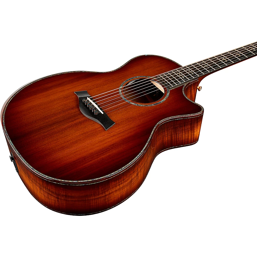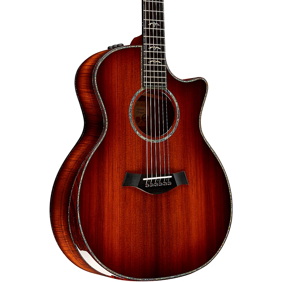 The Taylor Custom Redwood-Master Grade Koa Grand Auditorium acoustic-electric guitar combines visually striking tonewoods with revolutionary bracing and electronics for an unparalleled playing experience. Its rare sinker redwood top and Hawaiian koa back and sides produce a complex tone with shimmering highs, a focused midrange and balanced low end. Taylor's patented V-Class bracing enhances the guitar's natural resonance for greater volume, longer sustain and improved intonation. The ES2 pickup system captures the nuances of your playing for a true acoustic sound through amplifiers or recording equipment.