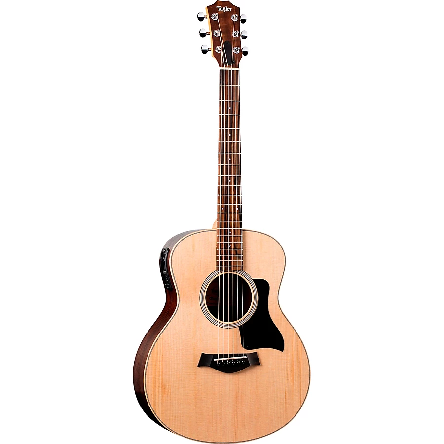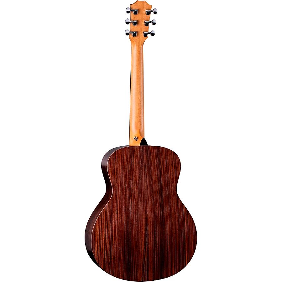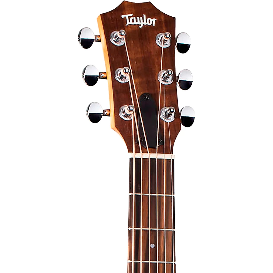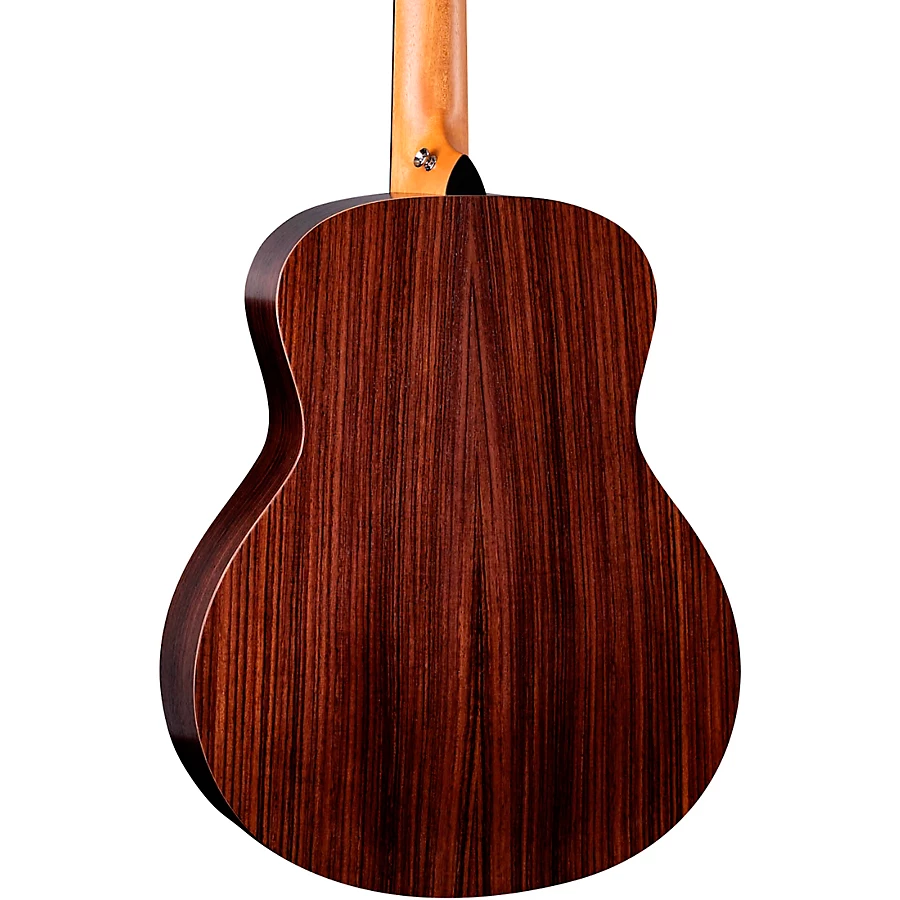 There's something undeniably inviting about the scaled-down size of the Taylor GS Mini-e. With a combination of portability and musicality, the GS Mini-e fits into virtually any situation, from the couch to the campfire to the concert hall. It's not too big, it's not too precious and it's not too expensive. That broad-based accessibility has given it a resounding universal appeal, as well as a built-in fun factor. A Sitka Spruce top blends stiffness and elasticity in just the right proportions which translates into broad dynamic range with crisp articulation, while layered rosewood back and sides offer robust tone with low-end fullness and high-end sparkle. This GS Mini-e is equipped with Taylor's ES-B system, which incorporates piezo design elements from the flagship Taylor ES2 system. Powered by a 9V battery, its onboard preamp includes a built-in digital chromatic tuner, an LED display for tuning and low battery indication, and a tone-sculpting 3-band EQ. The acoustic-electric versions enjoy a sweet upgrade to our ES2 electronics. All GS-Mini models include a durable hard bag for optimal fit.