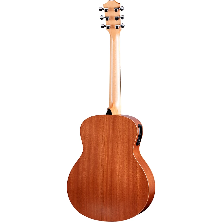 The special-edition GS Mini-e from Taylor is a staple of the acoustic guitar world because of its bold voice and portable, playable size. Featuring a sapele body, the GS Mini-e allows players to hear a rich projection and clarity with enough power to cut through an instrument mix. Onboard ES-B electronics make plugging in easy, and with the built-in digital tuner, players will have everything they need for an inspiring playing experience. The GS Mini is amplified via the Expression System Basic (ES-B) system, which incorporates piezo design elements from the flagship Taylor ES2 system and is powered by an onboard preamp that includes a built-in digital chromatic tuner, an LED display for tuning and low battery indication and Tone/Volume controls. The preamp/tuner is powered by two button cell 3v lithium batteries and conserves battery life using a standard on/off system that will automatically turn off if left on over three minutes. A low battery indicator on the LED display (located on the preamp circuit board) will display an ��L�� when the battery reaches 4.5 volts. A Taylor structured gig bag is also included for easy portability and ultimate protection.