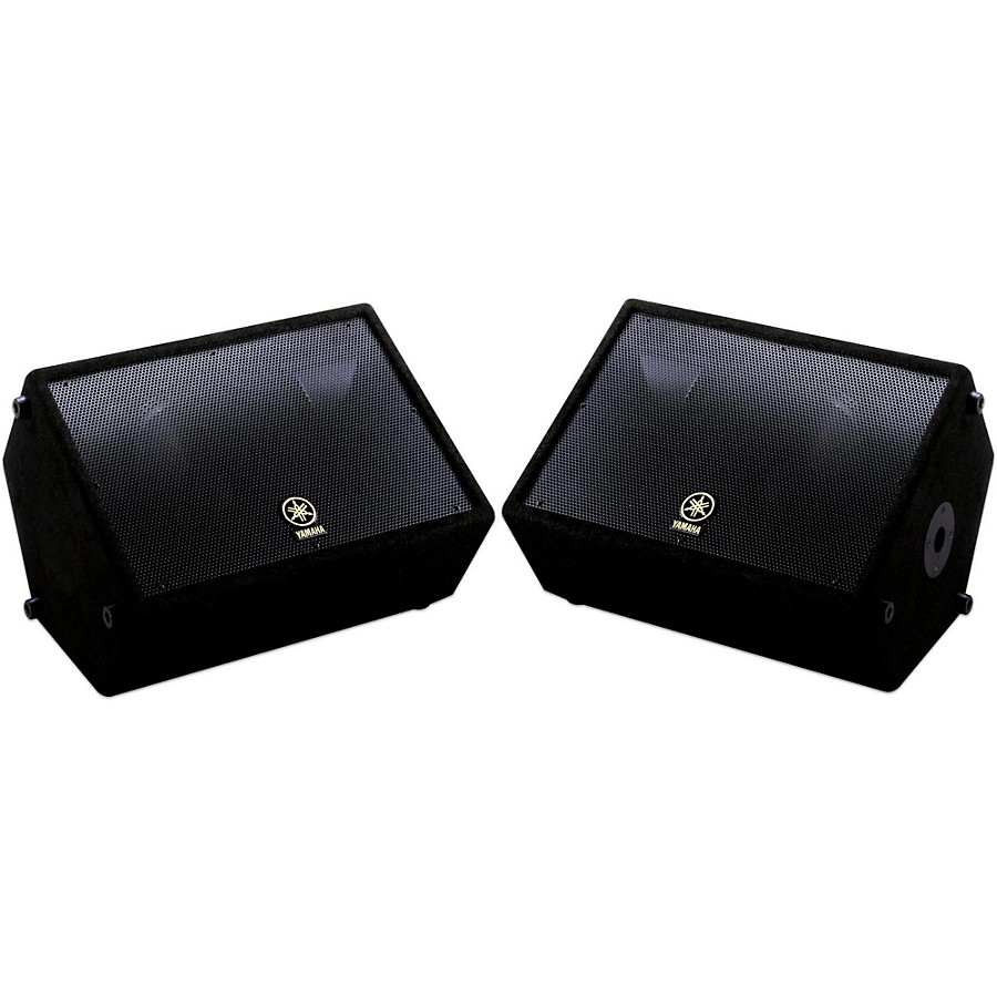 The A Series speakers by Yamaha are designed for live P.A. system use. They are 2-way systems featuring bass reflex cab design, heavy grille, recessed handles, and black carpet covering.