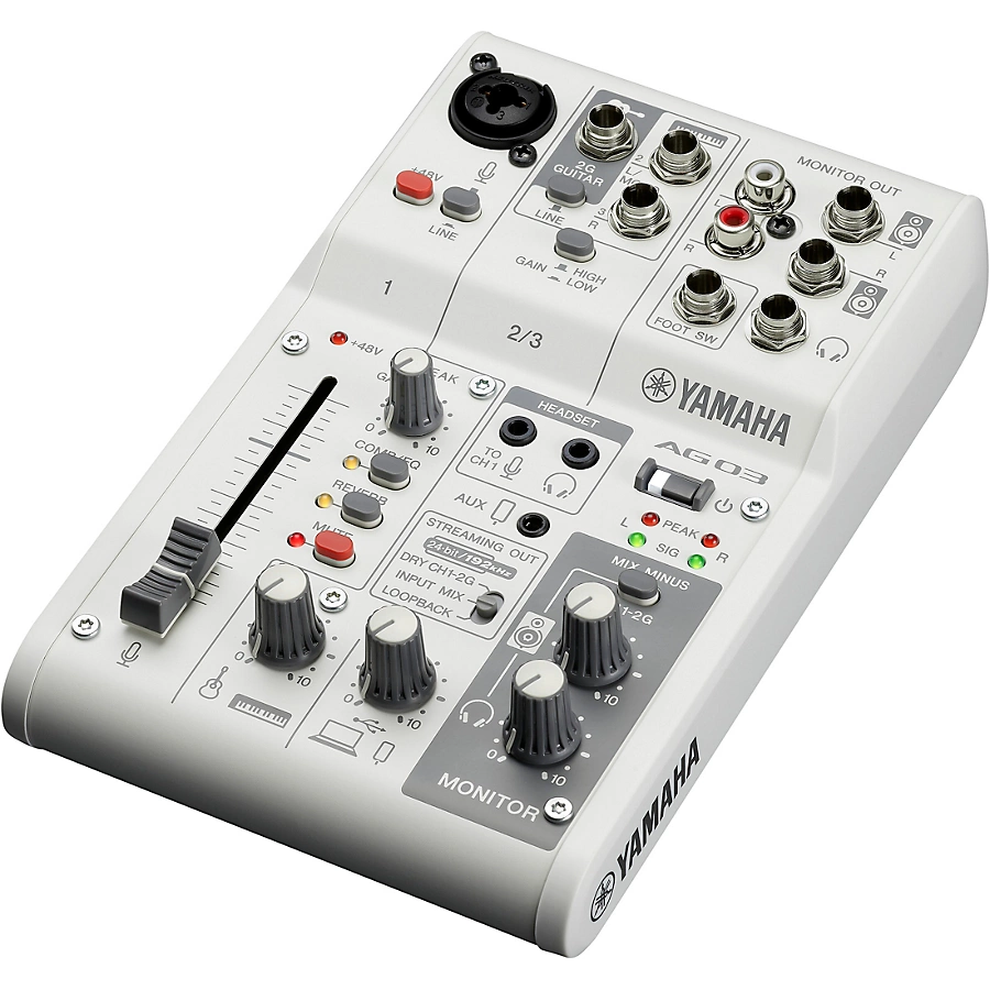The AG03MK2 Live Streaming Mixer Package from Yamaha is a full streaming setup centered around the AG03MK2 3-channel mixer. The package also includes a YCM01 Cardioid Condenser microphone ideal for live vocal or instrument performances, as well as YH-MT1 high-fidelity studio quality headphones and an XLR mic cable. This set is ideal for beginners or users building a new streaming system from scratch.