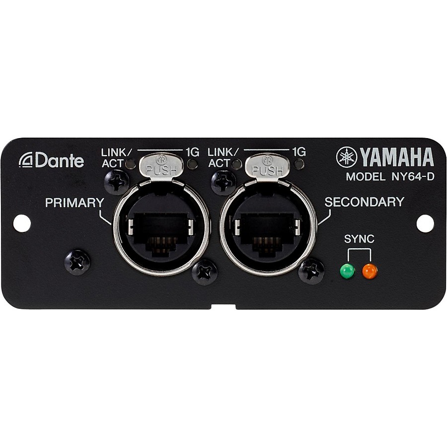 The NY64-D is an I/O expansion card for TF series consoles that allows transmission and reception of up to 128 channels (64 in/64 out) of uncompressed 48 kHz 24 bit digital audio data via a Dante? audio network. Used in conjunction with the Tio1608-D I/O, it is possible to create a versatile stage box system with up to 48 inputs and 24 outputs.