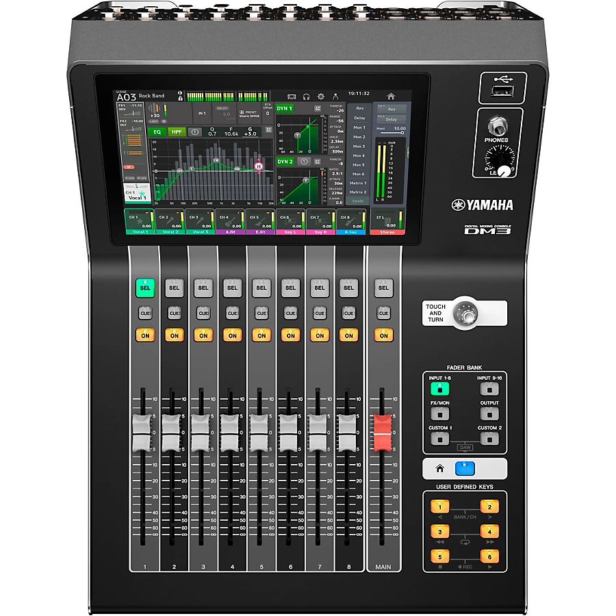 The Yamaha DM3S Professional 22-channel ultracompact digital mixer is an advanced yet intuitive mixing solution for professional DJs and electronic music producers. Boasting sampling rates as high as 96kHz and combined with Yamaha��s legacy of high-sound quality, the DM3S delivers a sonic clarity that is perfect any audio engineer looking for a transparent sound. This 22-channel digital mixer is also the ideal compact size for easy transportation from gig to gig. With a 9�� touchscreen and custom controls for mixing, livestreaming or recording, the Yamaha DM3S is a truly versatile digital mixer for all your professional audio needs.