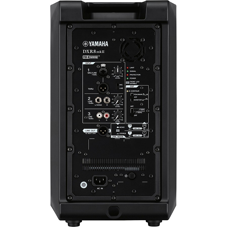 The Yamaha DXR8mkII 8�� powered speaker combines high-quality sound, onboard amplification and flexibility into a compact cabinet. It��s great for live bands, DJs and other mobile performers who value portability and power. An 8�� low-frequency driver produces impressive bass response and detailed mids, while the 1.75�� neodymium HF compression driver delivers extremely clear voice reproduction and musicality.