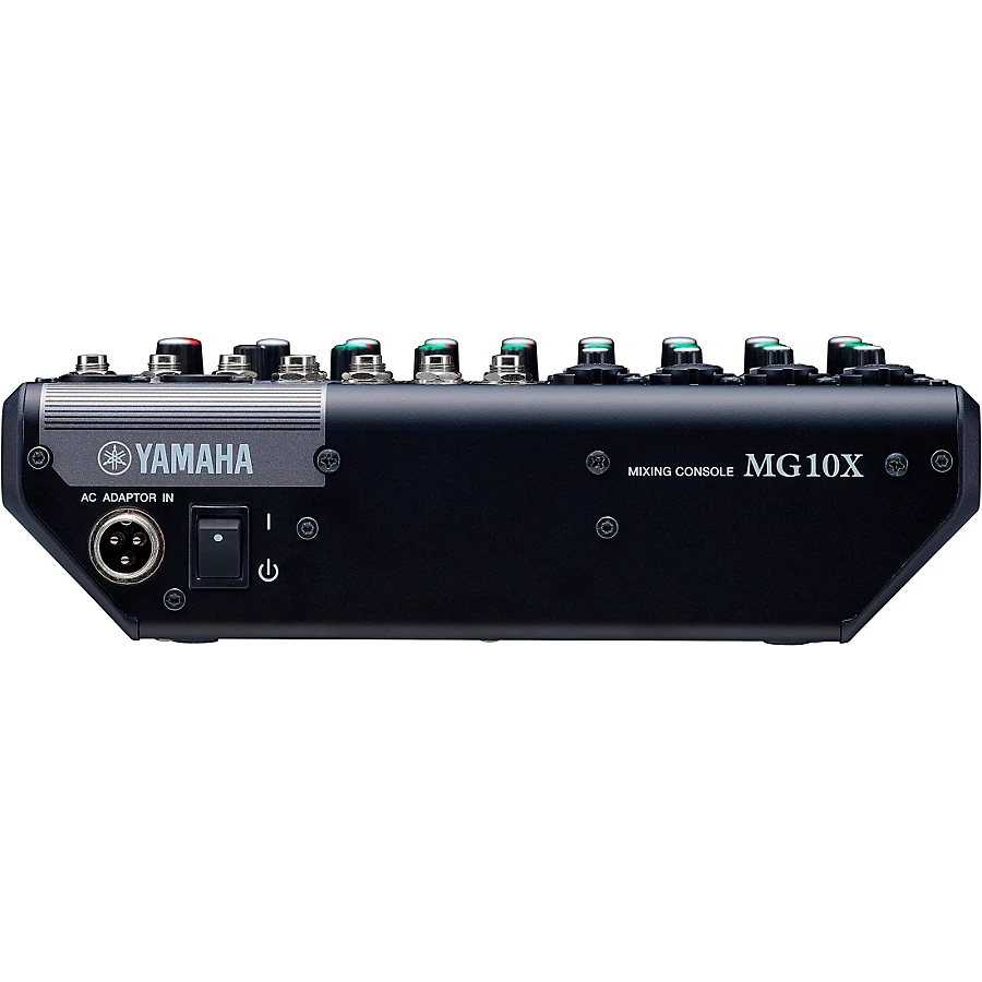 The MG10X can accept XLR, 1/4" phone and RCA-type pin jack inputs, and offers XLR and phone outputs. The MG10X offers rotary controls instead of faders, reducing the footprint for discrete placement onstage or anywhere space is a premium. A footswitch input allows hands-free effect muting.