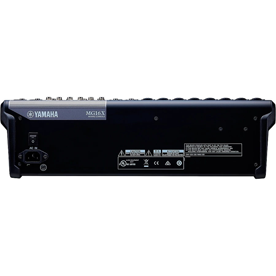 The MG16X can accept XLR, 1/4" phone and RCA-type pin jack inputs, and offers XLR and phone outputs. The MG16X offers faders, and lit channel on/off switches for easy visual indication of settings.