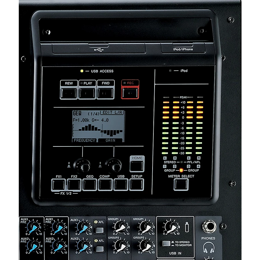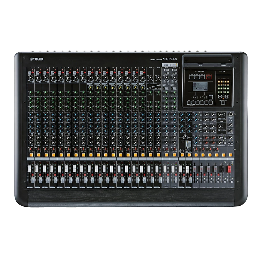 The MGP24X is a 24-channel mixing console with iPhone/iPod connectivity, compression and digital effects. This mixer is appropriate to a wide range of professional applications from portable PA to fixed installation. The MGP24X features 16 mic inputs with 48V phantom power and HPF per channel, 24 line inputs (16 mono and 4 stereo), 6 AUX sends + 2 FX sends, 4 GROUP buses + ST bus, 2 Matrix out, and 1 Mono out. It also comes with great-sounding microphone preamps, a detailed EQ, quality digital effects and broad digital connectivity.