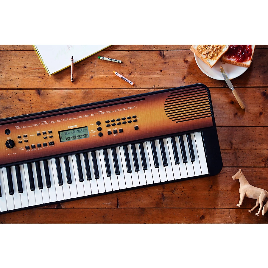 The PSR-E360 is designed for beginners who need a practice instrument with touch sensitive keys at an affordable price. It's also designed for the home, featuring an attractive wood-like finish. This ultra-portable keyboard features a variety of built-in instrument Voices and accompaniment Styles, making practice more fun and keeping students engaged. The PSR-E360 comes in two attractive finishes, one with a dark wood grain reminiscent of an acoustic piano, and the other with a lighter wood grain that reminds you of a classic guitar finish. Not only will a child learn on this instrument, but they will also have fun, and you will appreciate the attractive design.