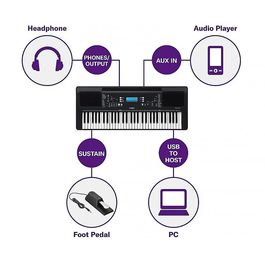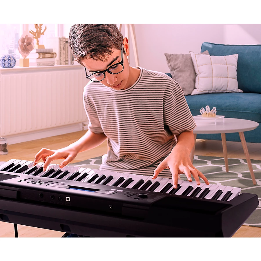 The Yamaha PSR-E373 portable keyboard offers an accessible way for beginners to start learning and creating music. With over 600 high-quality instrument Voices and a variety of accompaniment Styles, you'll have a world of inspiration at your fingertips. The 61 touch-sensitive keys provide expressive control over dynamics. Play lightly for a soft sound or strike firmly for loud volume, just like an acoustic piano.