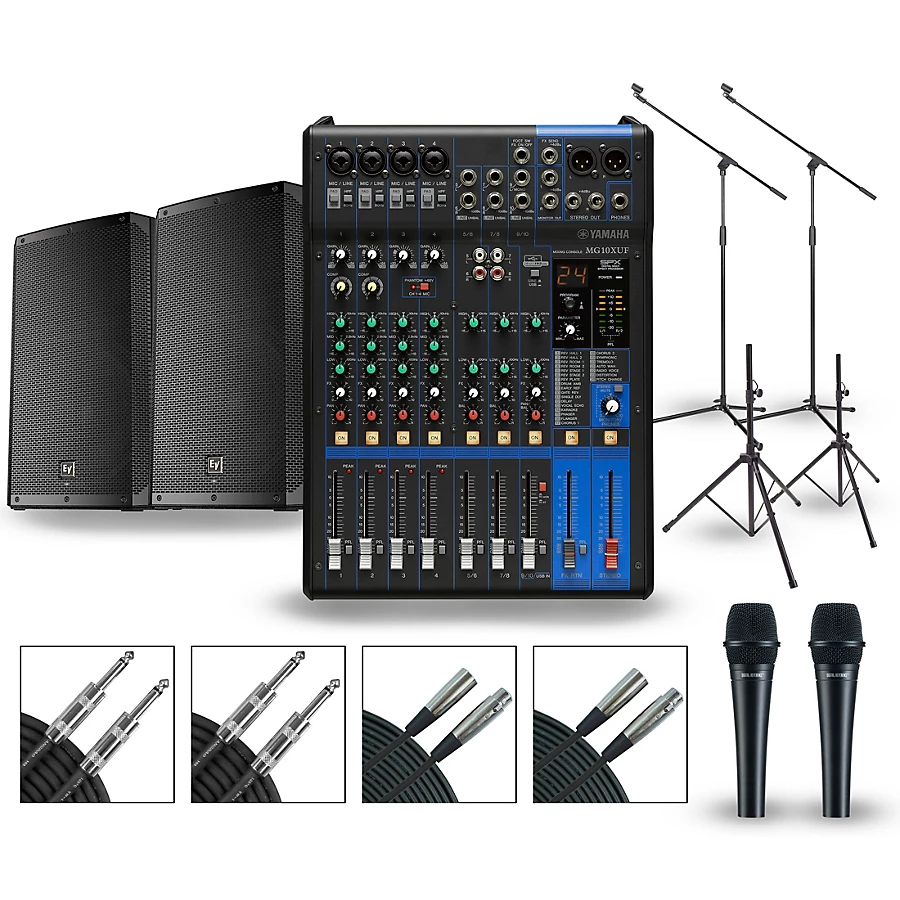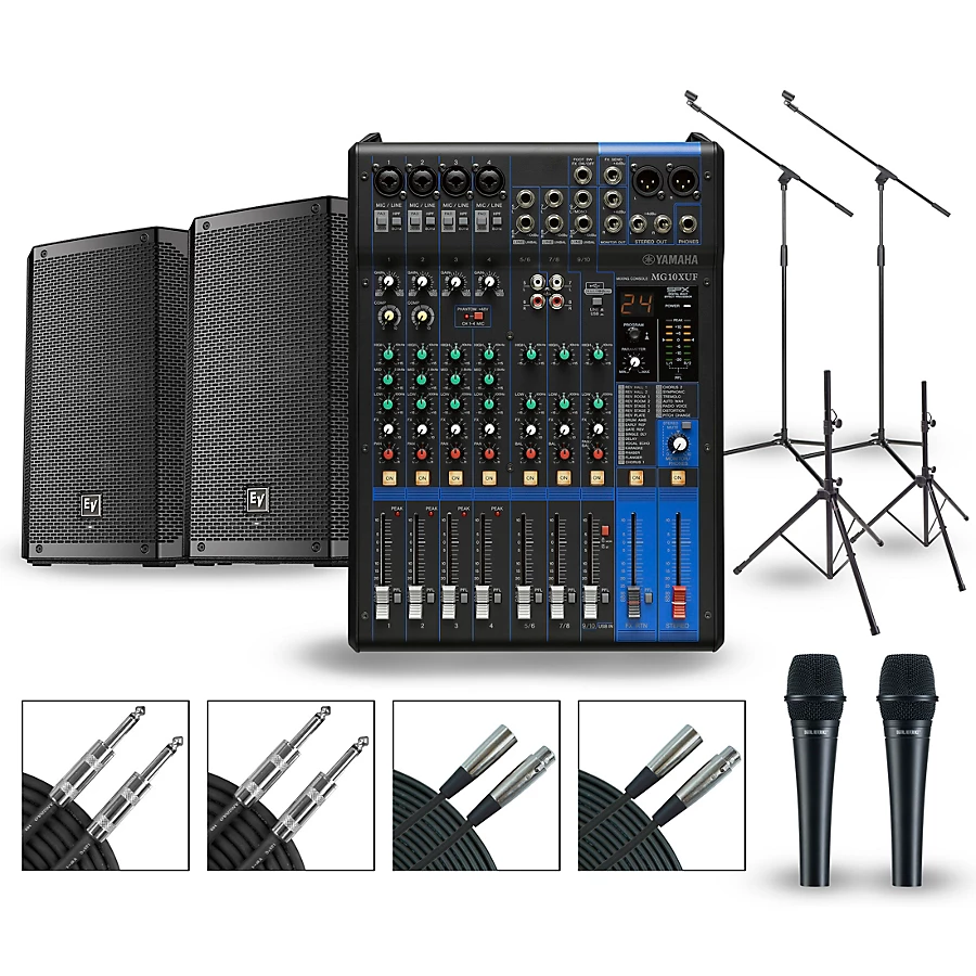 Yamaha PA Package with MG10XUF Mixer and Electro-Voice ELX200 Powered Speakers 10" Mains