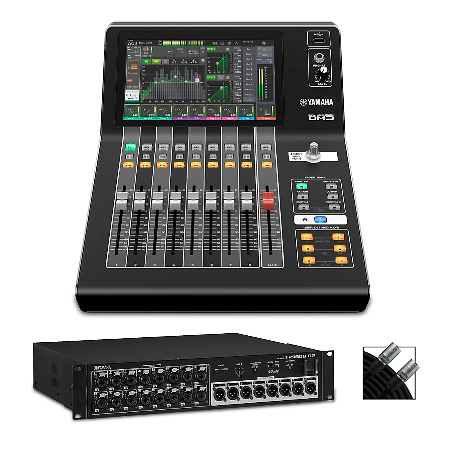 Yamaha DM3-D Ultracompact Digital Mixer With Tio1608-D2 Dante Stage Box and ProCon Shielded Cable