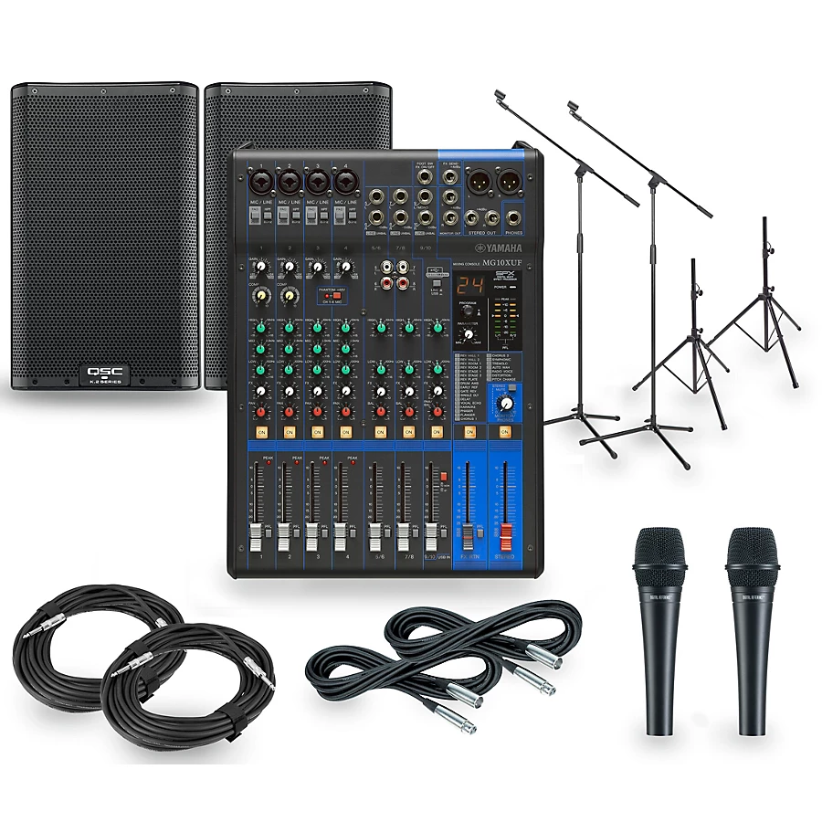 Yamaha PA Package with MG10XUF Mixer and QSC K.2 Powered Speakers 10" Mains