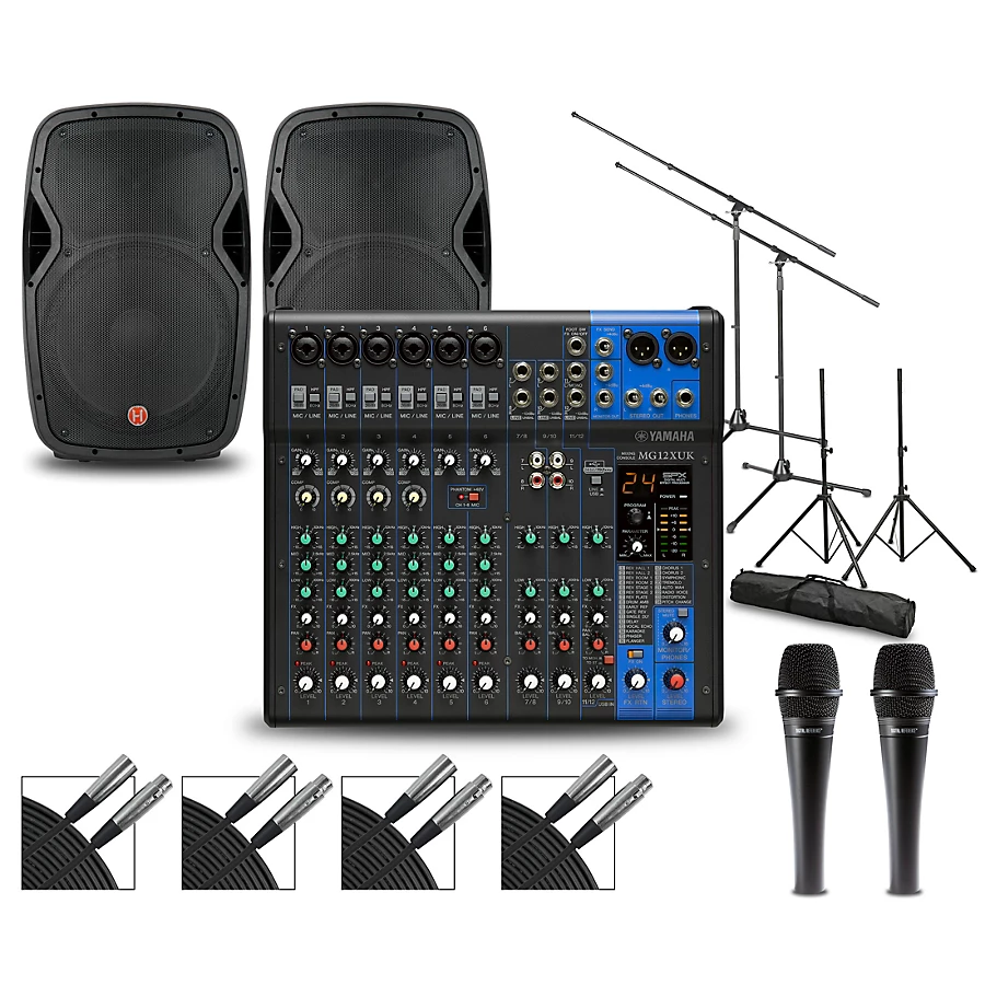 Yamaha Complete PA Package With MG12XUK Mixer and Harbinger Vari V1000 Speakers 12" Mains